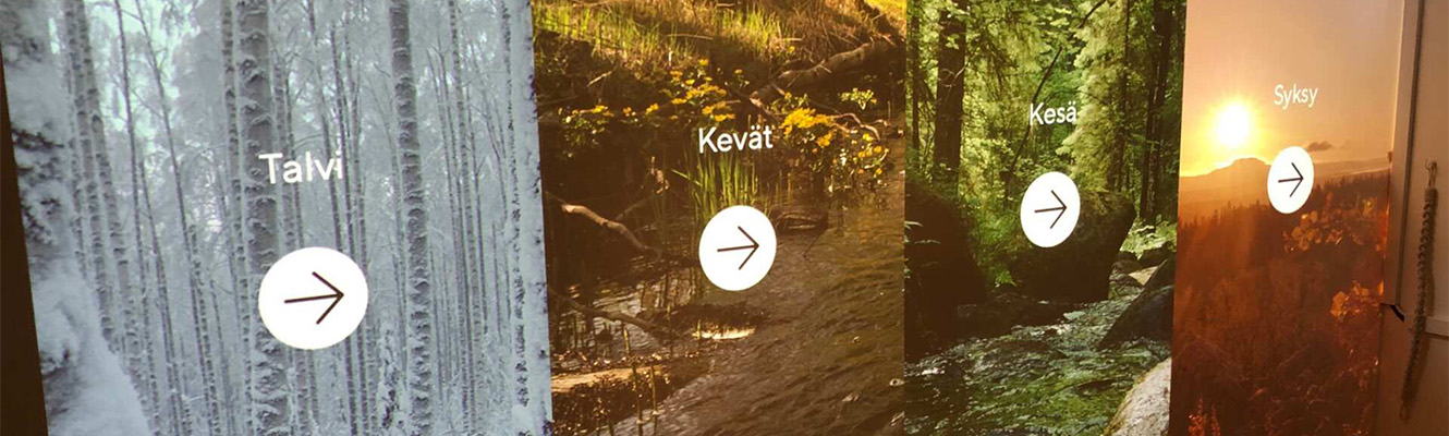 The population in Finland, like in many other countries in Europe, is ageing and the nursing resources are getting scarce. Due to this, there is a strong interest to invest in smart technologies that can support nursing.The digital and multisensory room pilot in Kustaankartano Comprehensive Service Centre is created in co-operation with Forum Virium (The City of Helsinki innovation company) and the Helsinki Service Centre as part of the Co-created Health and wellbeing (CoHeWe) project. The pilot period is the first half of 2020.The 20-square-metre-room stimulates senses with a moss wall, tangible nature elements such as birch trees and hay bales, and a virtual technology wall. The wall brings Finnish nature to the room via 16 landscape videos with real sound scenery. In addition, the wall enables memory games and the opportunity to play by creating animations, e.g. painting Northern Lights or flying autumn leaves. The wall is designed by OiOi Collective, a company specialised in smart space solutions.The room is easy to install, modify and scale. Next addition to the Kustaankartano room is VR glasses.