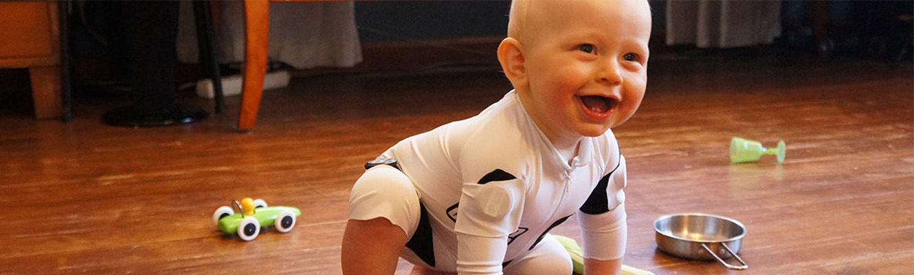 A new innovation makes it possible, for the first time, to quantitatively assess children’s spontaneous movement in the natural environment.Researchers have developed a smart jumpsuit, or a garment that accurately measures the spontaneous and voluntary movement of infants from the age of five months. Details on their motility help in assessing abnormal neurological development, among other things.The study on the smart jumpsuit and the related analysis method applied to 7-month-old infants was published in the Scientific Reports journal. In the future, the jumpsuit can also be used to study older children.“The smart jumpsuit provides us with the first opportunity to quantify infants’ spontaneous and voluntary movements outside the laboratory. The child can be sent back home with the suit for the rest of the day. The next day, it will be returned to the hospital where the results will then be processed,” explains Sampsa Vanhatalo, professor of clinical neurophysiology at the University of Helsinki.Vanhatalo says that the new analysis method quantifies infant motility as reliably as a human being would be able to do by viewing a video recording. After the measurement, the infant’s actual movements and physical positions will be known to the second, after which computational measures can be applied to the data.“This is a revolutionary step forward. The measurements provide a tool to detect the precise variation in motility from the age of five months, something which medical smart clothes have not been able to do until now.”The smart jumpsuit was developed under the Rhythms in Infant Brain (RIB) project, part of the Health from Science (TERVA) programme funded by the Academy of Finland, the Foundation for Pediatric Research and the Finnish Brain Foundation. The multidisciplinary research group, which operates in the New Children’s Hospital, is headed by neurophysiologist Sampsa Vanhatalo and paediatric neurologist Leena Haataja. In addition to physicians, the group comprises psychologists, physiotherapists, nurses and engineers.The textile and usability design of the smart jumpsuit was coordinated by researcher Elina Ilén, while researchers Manu Airaksinen and Okko Räsänen from Aalto University were in charge of AI analyses. The project utilised the Movesense sensor, an open-source device developed in Finland by Suunto, and a mobile application developed by the German company Kaasa.Full press release on University of Helsinki’s websitePublished 13 February 2020